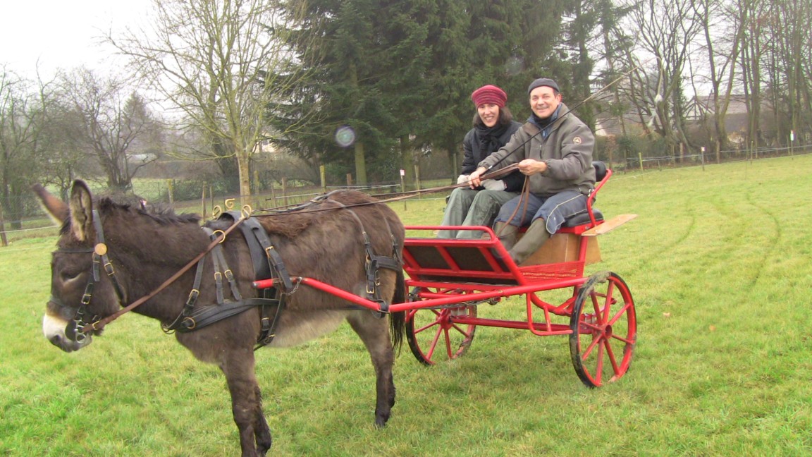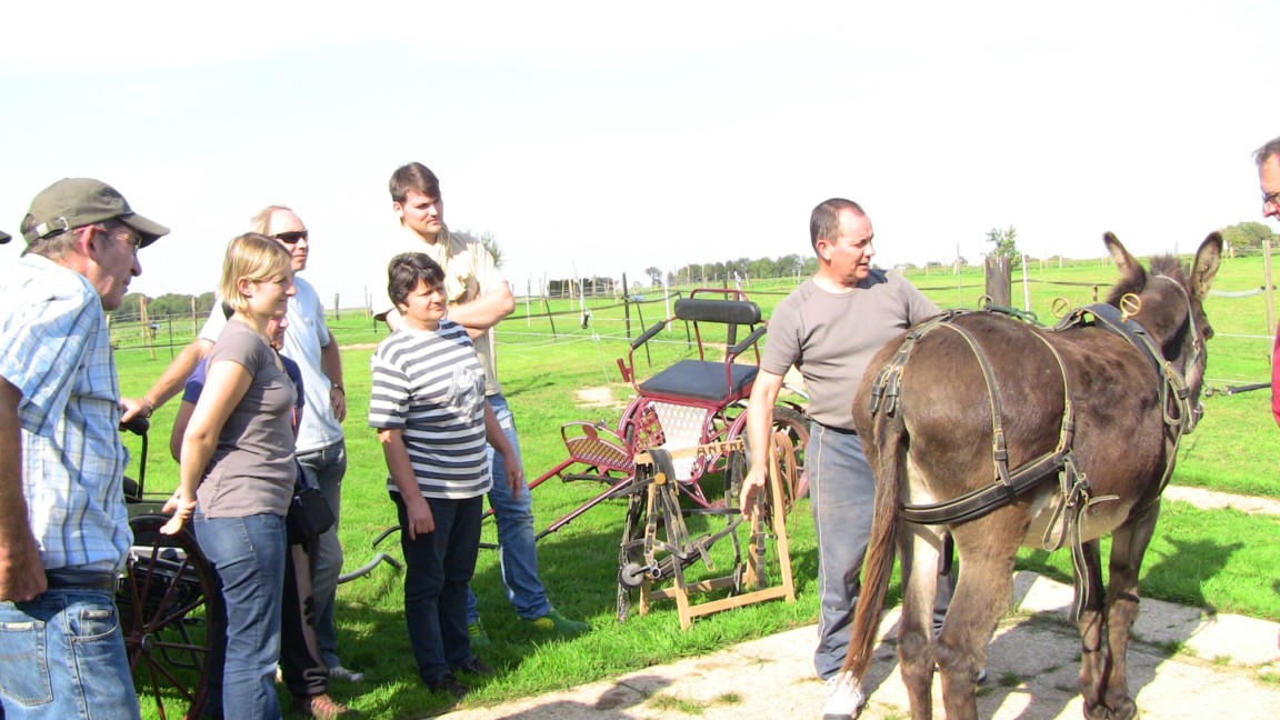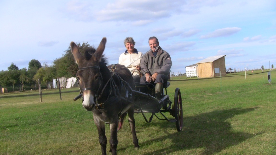 Quand j’ai parlé à Gérard de ma difficulté à séparer mes ânes et de mon désir d’attelage en paire, il m’a aussitôt proposé un stage d’une semaine, accompagné de mon épouse, et cette fois avec mes propres ânes et ma voiture. Nous avons donc prit date pour la semaine du 13 au 19 novembre 2006.
