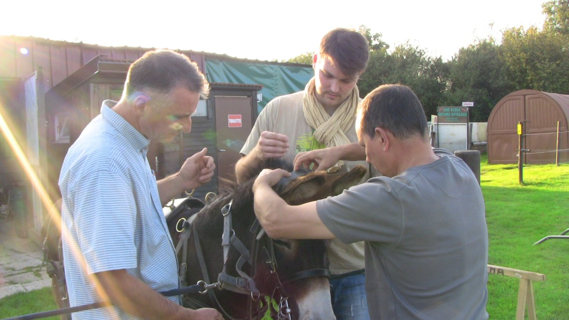 Je croyais tout savoir avant de venir chez vous. Je ne savais rien, en fait de l'âne, de ses soins, du garnissage et de l'attelage. Je suis reparti avec plein de bonnes choses dans la tête. Mai le plus dur reste à faire!