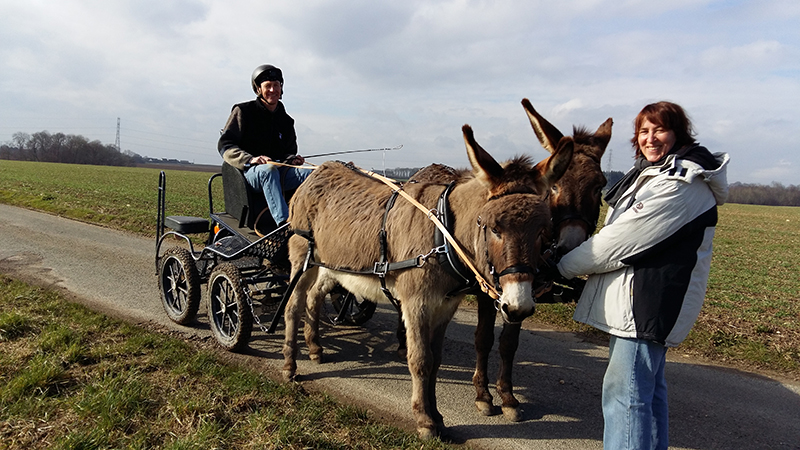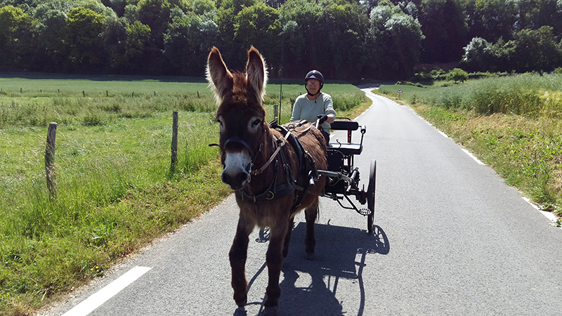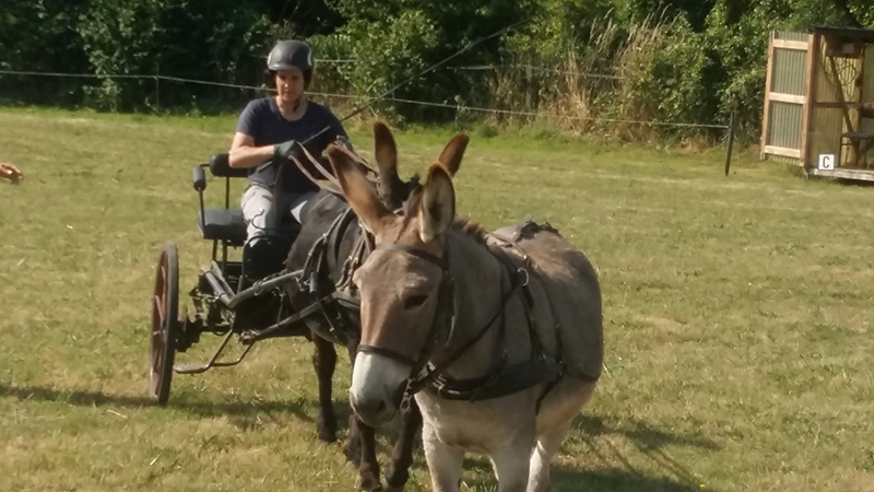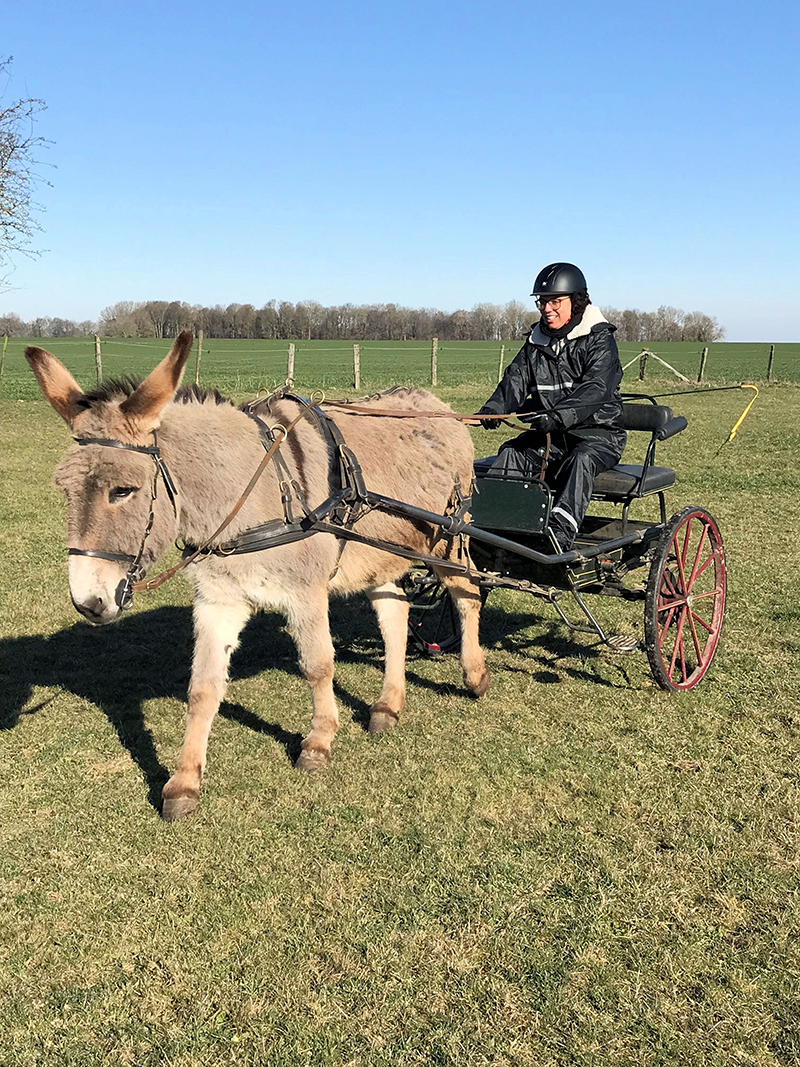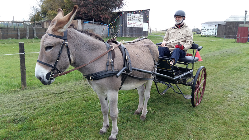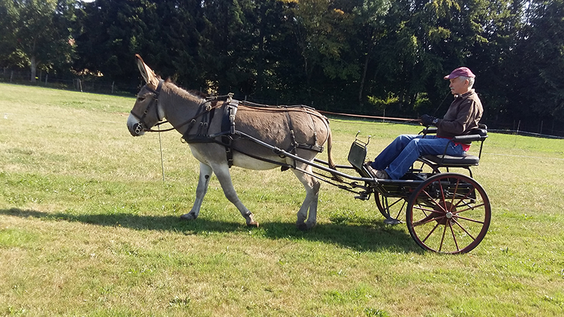 J’attèle avec des ânes depuis une petite dizaine d’année en simple et participe à plusieurs manifestations d’attelage. Voici trois ans que j’ai découvert l’association ANENA et participe au concours et à l’assemblée générale.