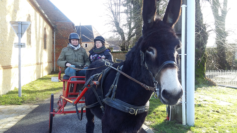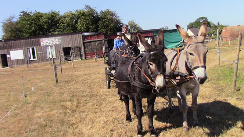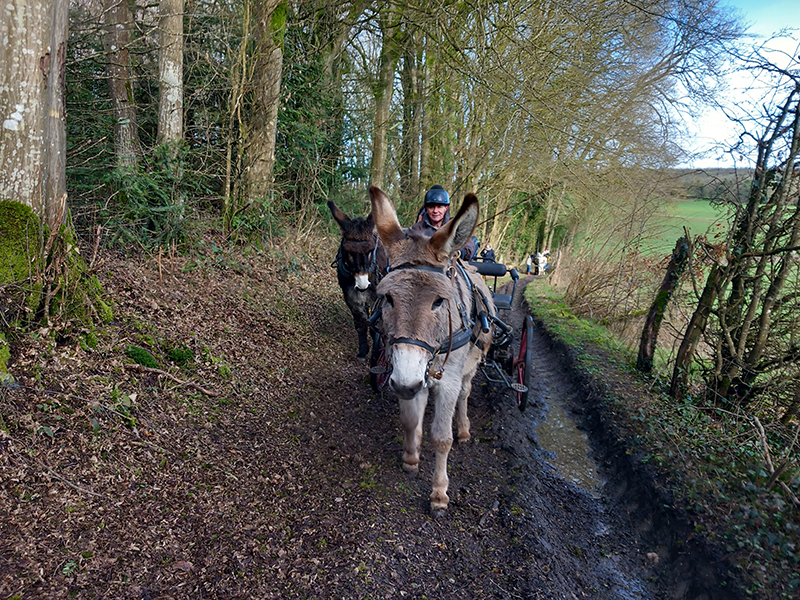 Le lendemain, nous avons mis Basile et César, les ânes de l’équipe Lurand au tandem. Réussite, il restait parfaitement alignés et nous ont offert une matinée de plaisir .