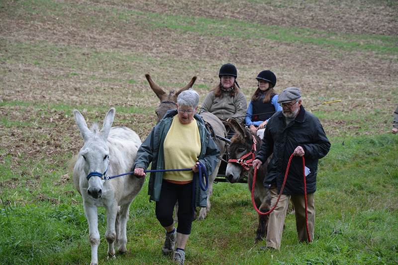 L’après midi, nous avions fait le pari d’atteler à quatre. Après deux heures de réglages et impatients de partir battre la campagne, nous avons mis les ânes en mouvement. Incompatibilité de caractère, un petit problème technique et notre rêve du jour parti en fumée. Nous avons décidé de dételer et de dégarnir avant qu’il n’arrive un accident.